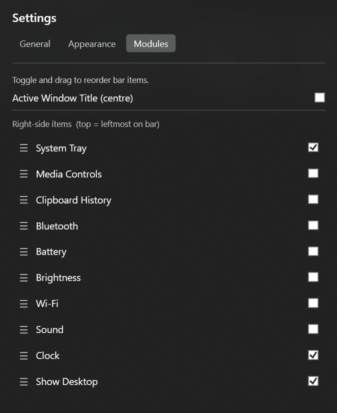 I made this to fulfill my personal need of a MacOS-style top bar without the additional dock that most programs include.