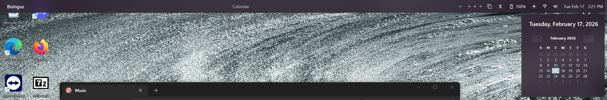 - Clock, calendar, battery, volume, and brightness controls.